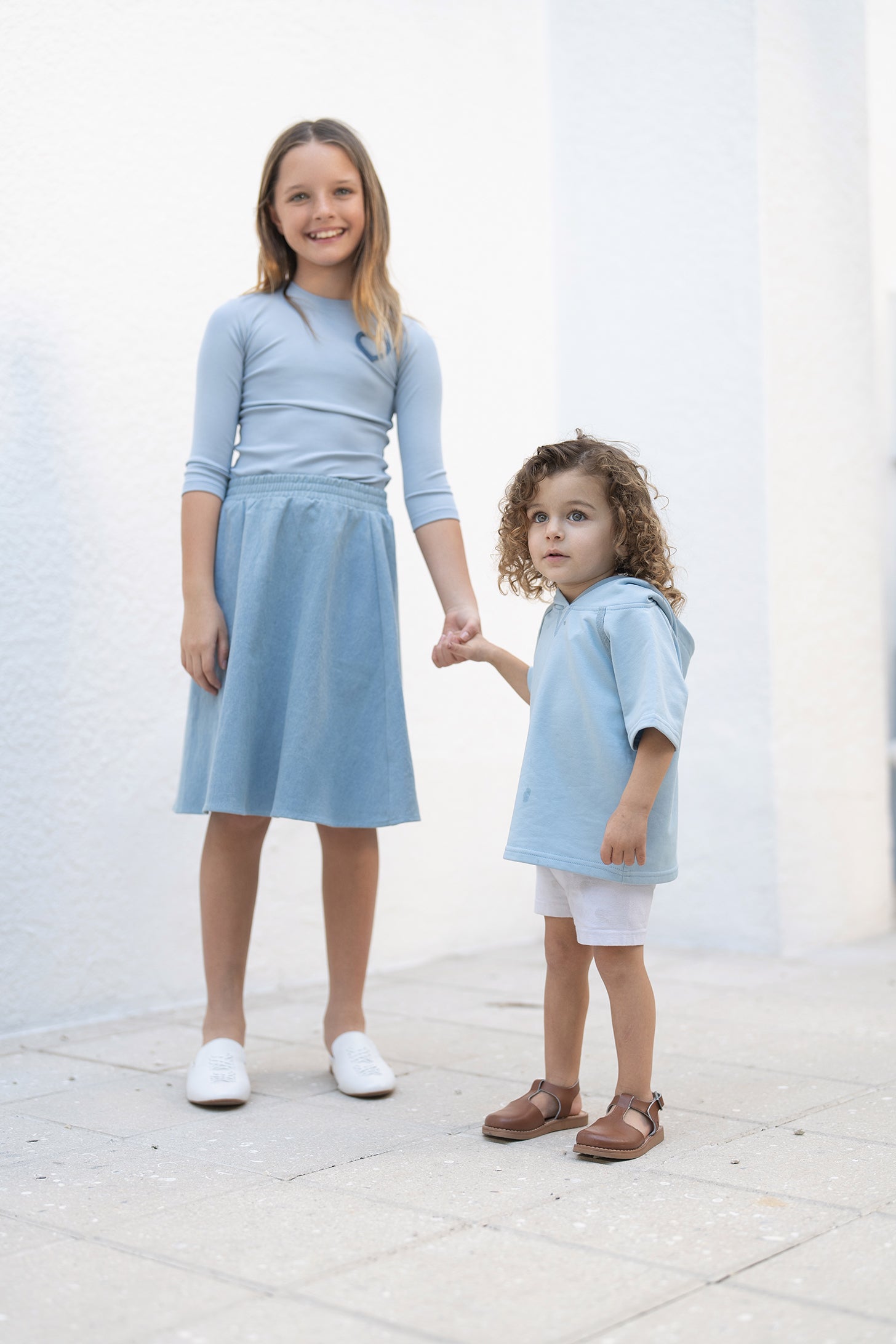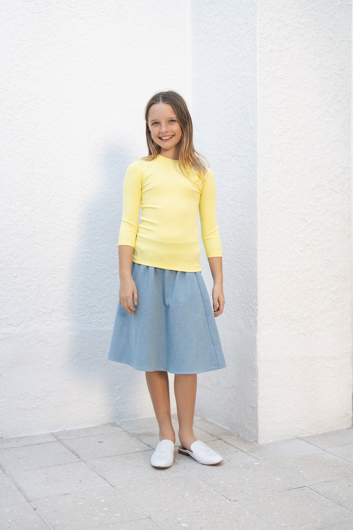Our Denim Skirt Pairs Well with the Heart Piping Tee and the Raglan Sweatshirt