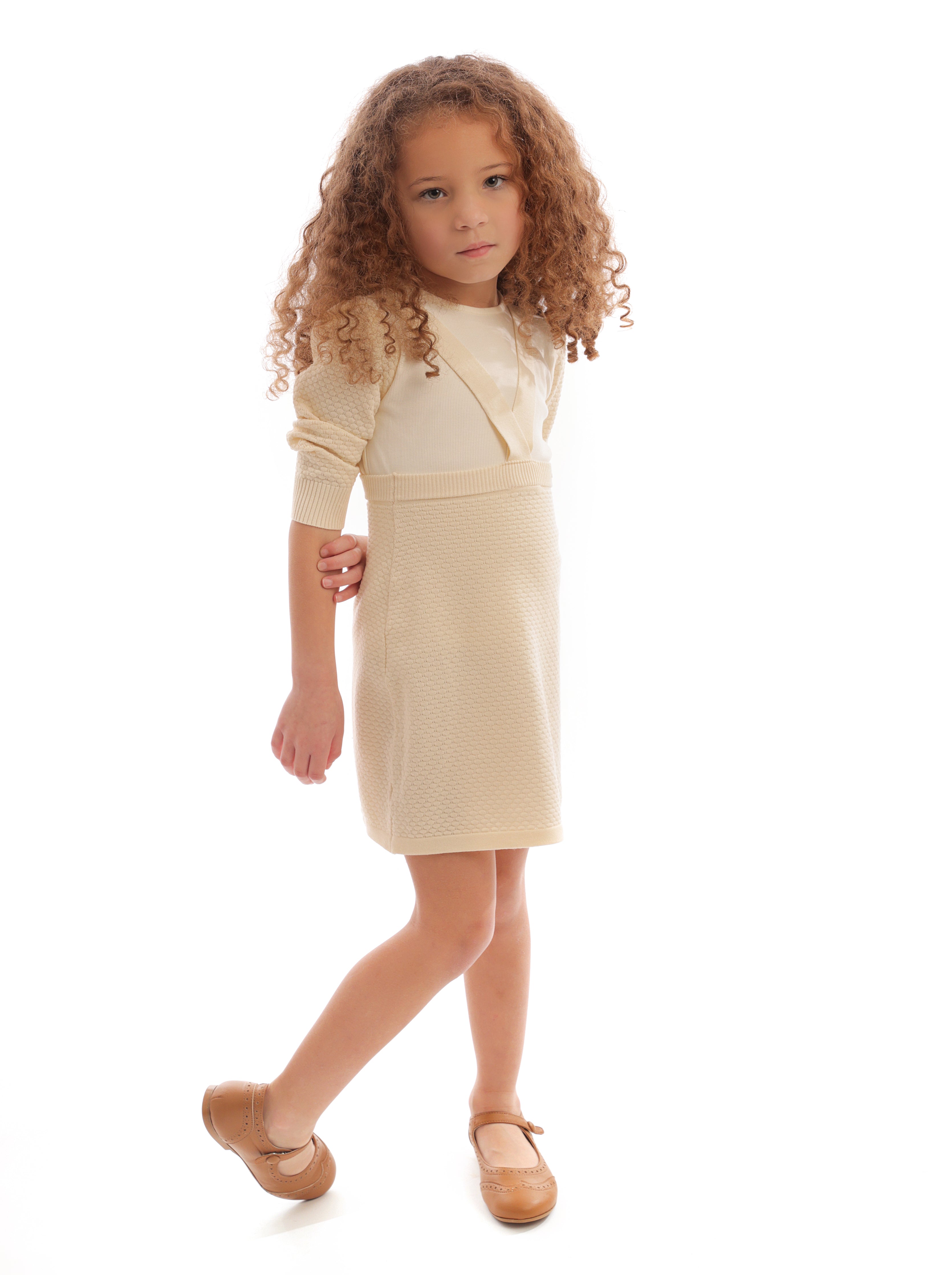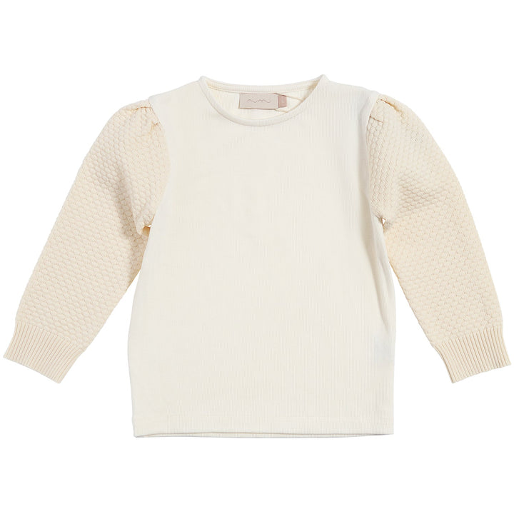 T-Shirt With Knit Puff Sleeve 3/4 Length Cream