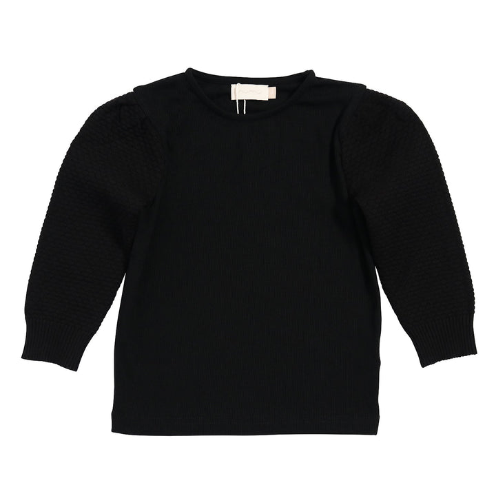 T-Shirt With Knit Puff Sleeve 3/4 Length Black